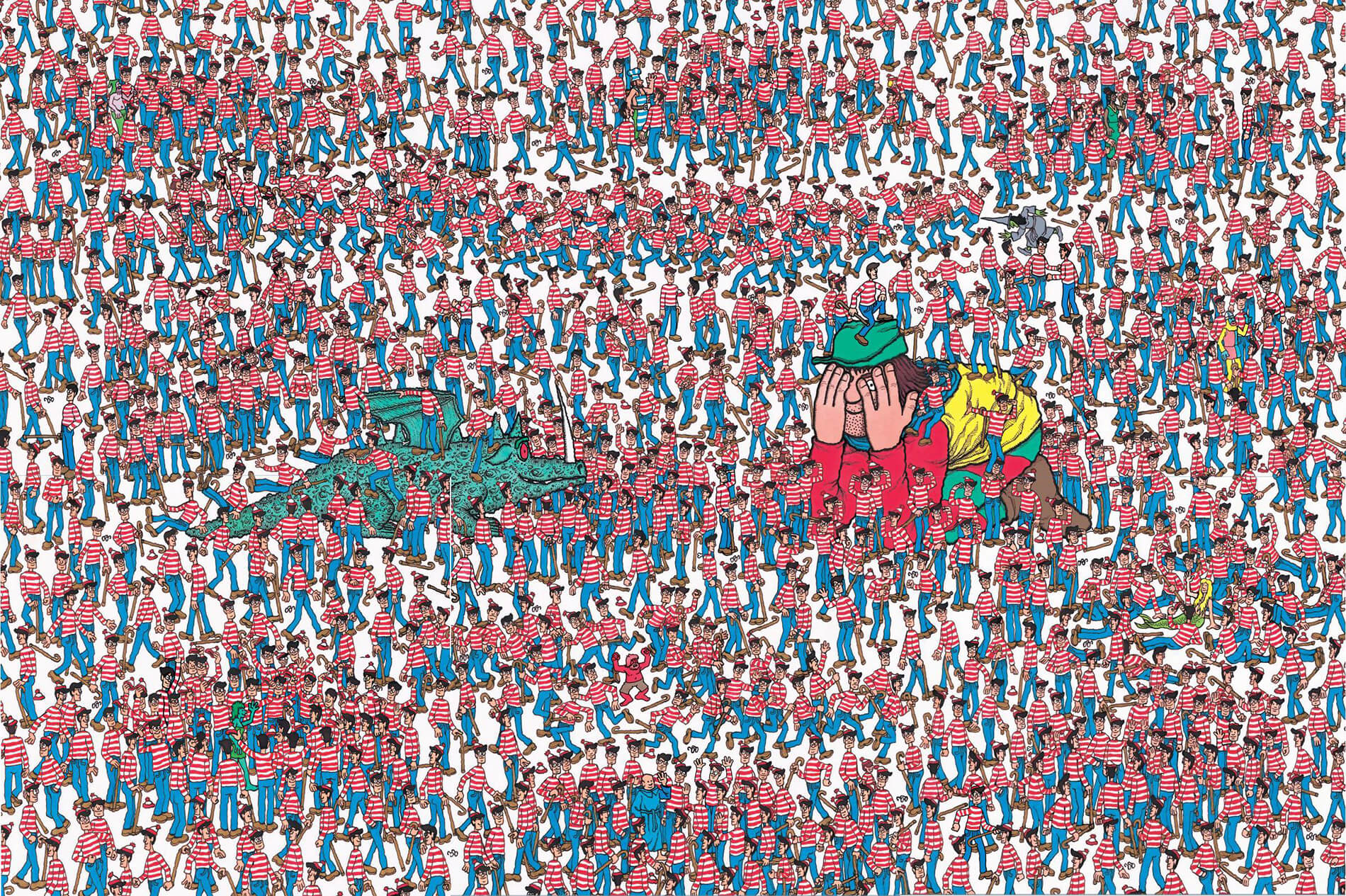 You must find the Waldo that has lost his shoe and is wearing a striped sock. Click on him when you find him